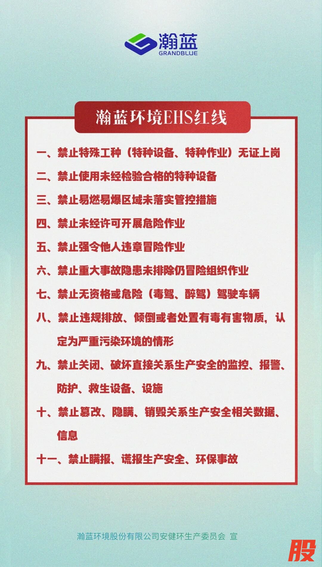 瀚蓝发布EHS愿景、方针和红线规则,构建“主动安全文化引领+安健环管理体系支撑”双轮驱动的模式,聚焦多业态、多区域的复合风险管控难题,采取针对性的防范策略和管控措施,探索创新安健环管理方式,深化智慧安全管理实践,切实保障企业安全稳定运营、员工生命健康,助力行业可持续发展。主要措施为: