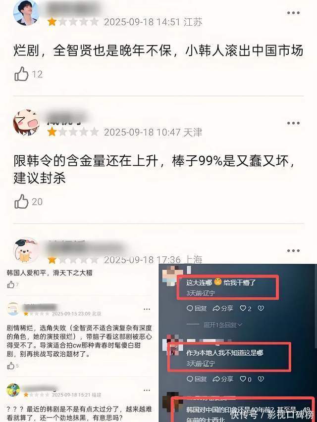 《来自星星的你》让她在国内热度大涨,“顶流女明星千颂伊”的人设深入人心,吸引了大批国内粉丝的喜爱和支持。如今这部剧的男女主先后塌房,也是有一种玄学的既视感。《暴风圈》让网友对全智贤的滤镜碎了一地,辱华事件发酵后,豆瓣评分跌至4.2分,社交平台掀起锁死“限韩令”的声浪。在大部分网友看来,国家尊严高于偶像崇拜,辱华艺人不应被中国市场接纳。