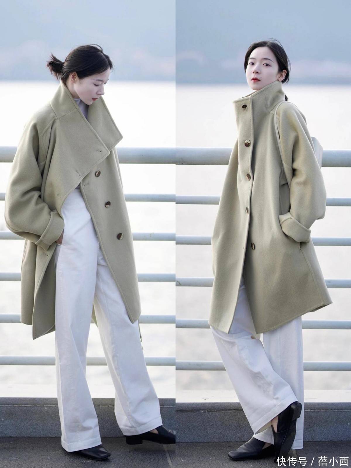 在一众基础色中,豆绿色大衣堪称今年秋冬的“黑马”,它打破了秋冬穿搭的沉闷感,以清新淡雅的色调成为街头一道亮丽的风景线。豆绿色介于绿色与灰色之间,饱和度适中,既不会过于张扬,又能在基础色中脱颖而出,自带温柔治愈的气质。